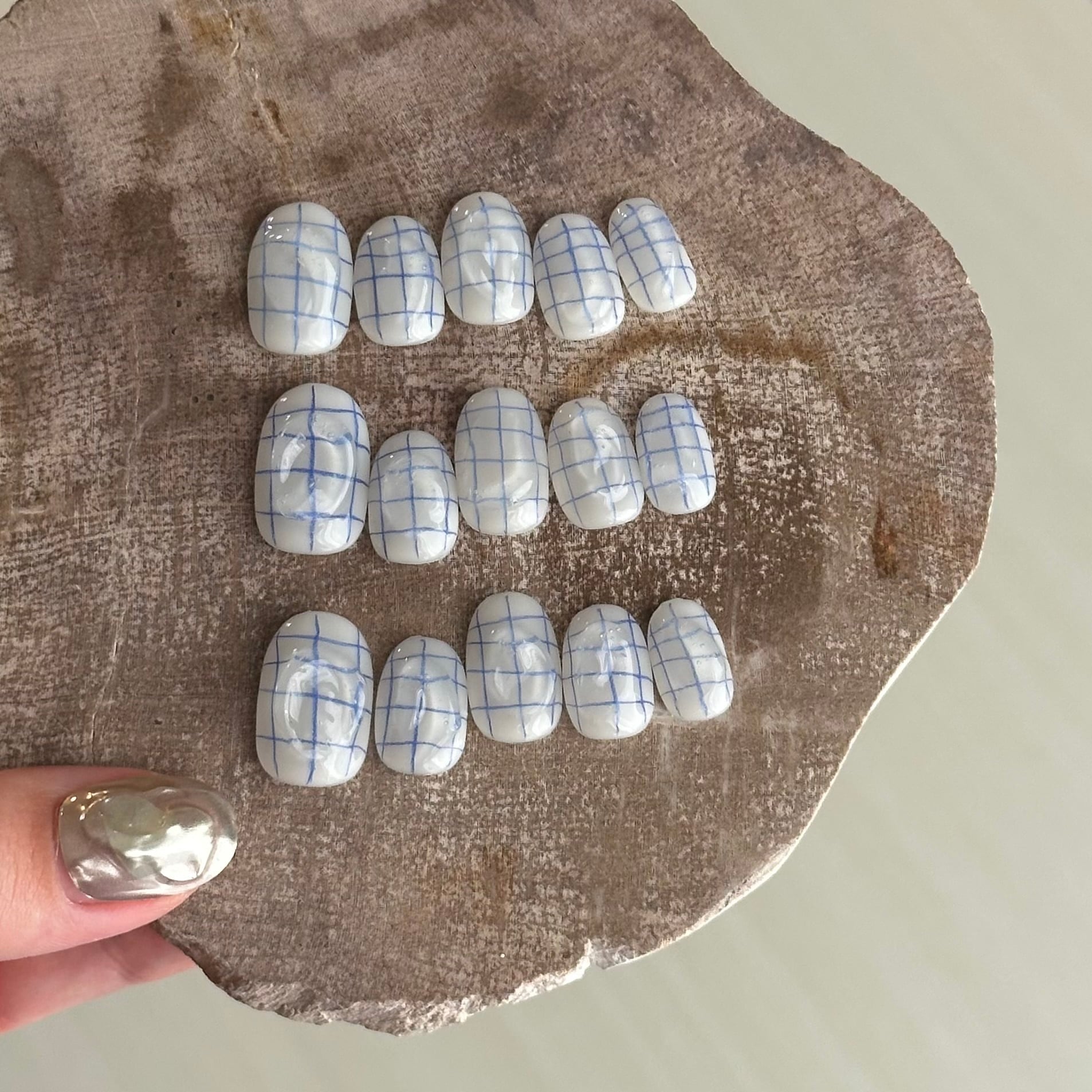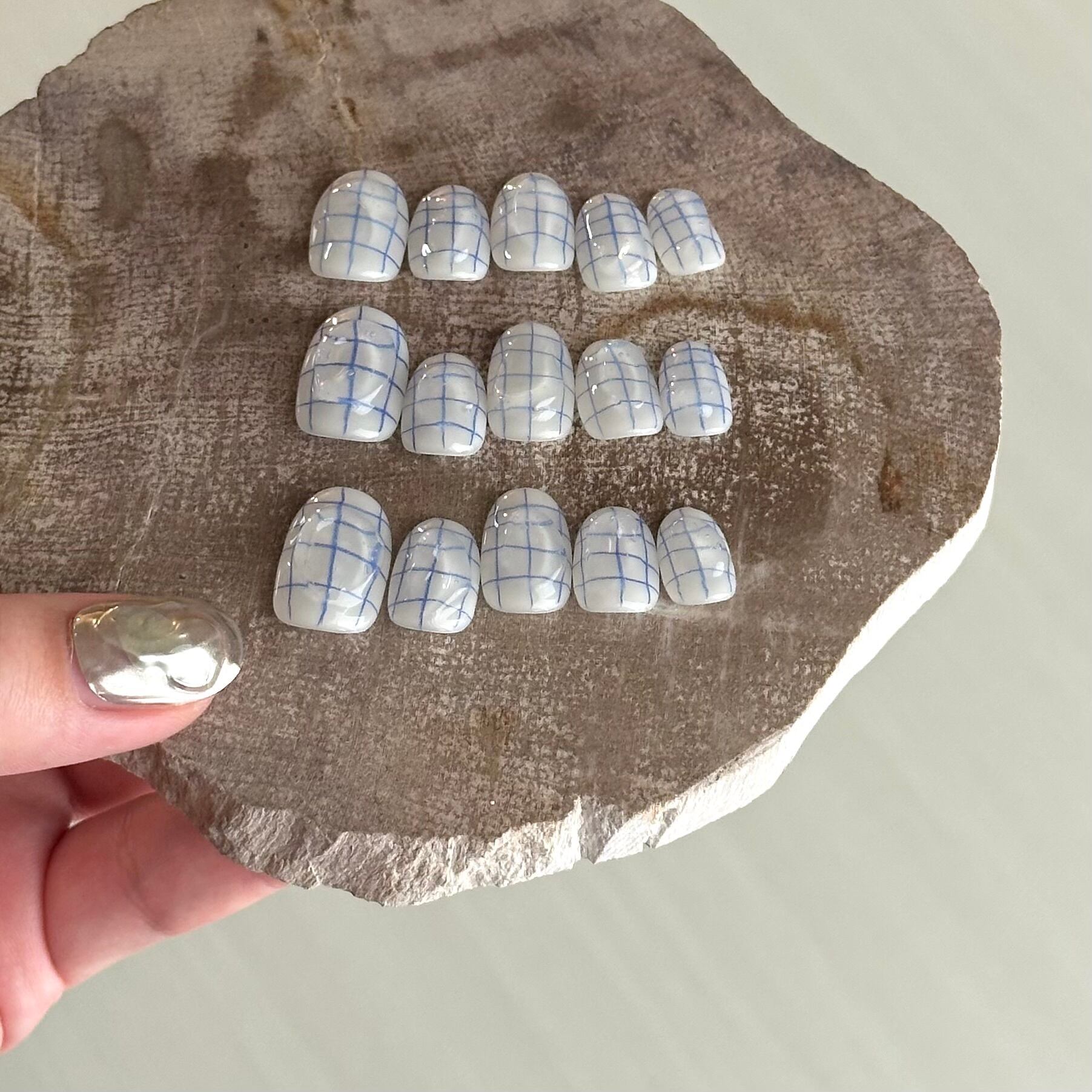 【 現品販売 】no.116 bule check 片手5本set